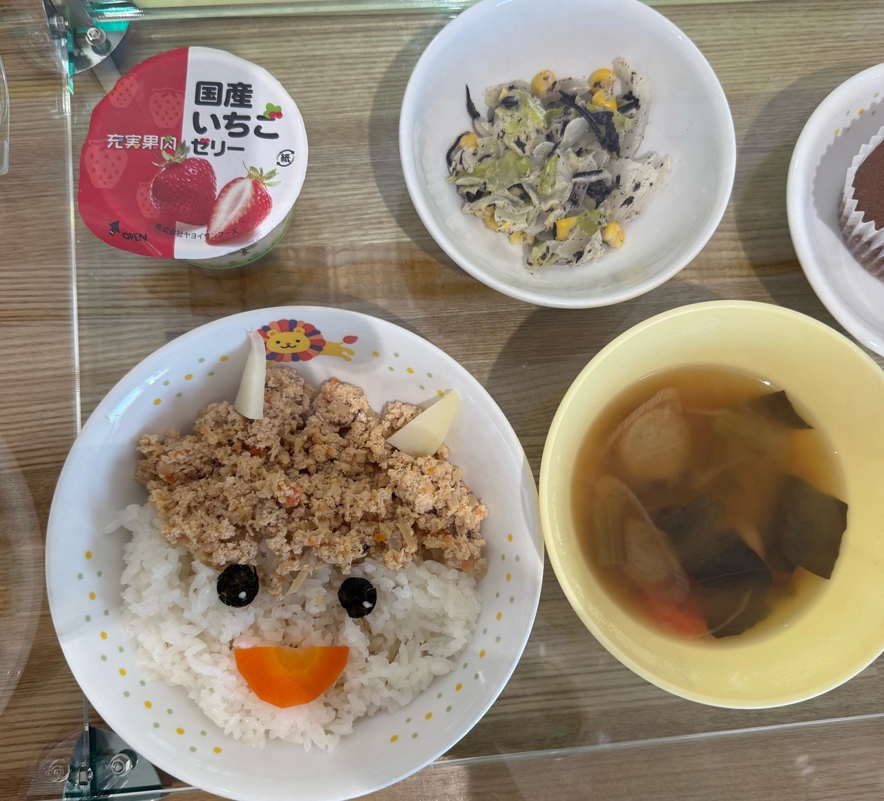 昨日は、保育園で節分集会をしました。とら組のかわいい鬼さんと豆まきごっごをしたので、今日は給食室で「鬼のそぼろごはん」を作って提供しました。かわいい!かわいい!と喜んでくれ、どのクラスもたくさん食べてくれました(*^▽^*)