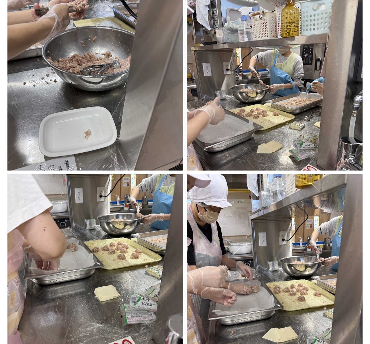 6月は、日本の郷土料理『埼玉県(さいたまけん)』です。栄養士の故郷になります。茨城県のお隣の県ということもあり、あまり変わった郷土料理が見つからない中、行田市の「ゼリーフライ」なんてどうだろうと思い挑戦しました。つぶしたじゃがいもとおからを混ぜ、つなぎで卵を入れたものを小判型に成型し、そのまま油で揚げます。それにソースをたっぷりかけて、出来上がり‼あれ?それだとお肉もお魚も使わない・・・。なんかさみしい感じになってしまうので、保育園ではひき肉を入れてみました!なかなか好評で、たくさん食べてくれました。「油味噌」は秩父地方の料理で、甘辛いみそ味になります。お野菜が苦手な子も、白米と一緒に食べて美味しいと喜んでくれました(#^.^#)