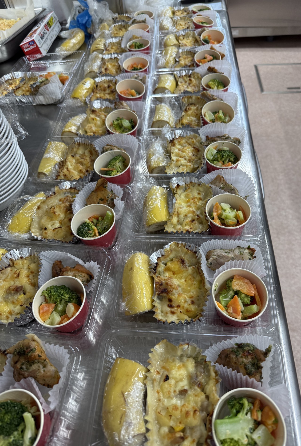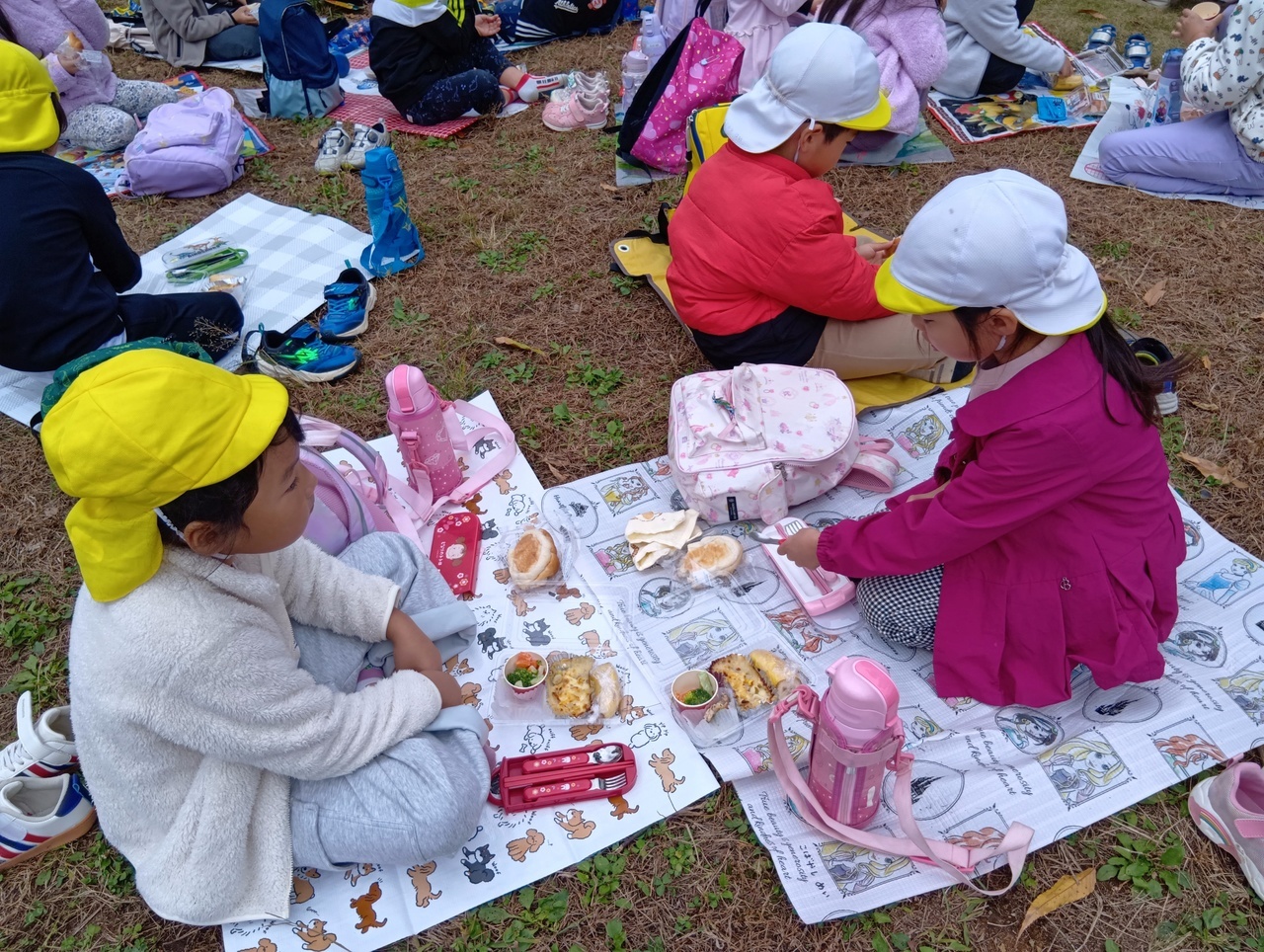 今日は、とら組のみんなが二宮小学校の《おもちゃまつり》に招待されました。二宮小学校の隣に公園があるので、給食室でお弁当を作って、公園まで届けました(*^_^*)元気に公園で遊んでいたとら組のみんな。お弁当を運んでいくと大歓声で迎えてくれました。ちょっと曇り空でしたが、気温は暖かく、過ごしやすい中でたくさん食べてくれました(^O^)/