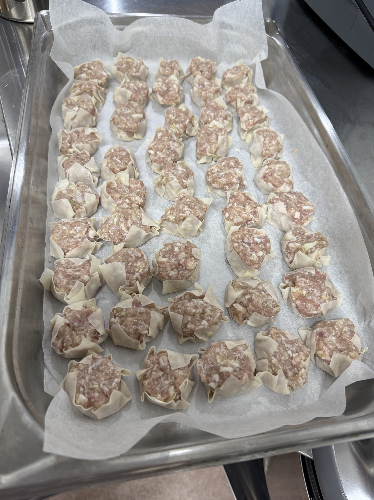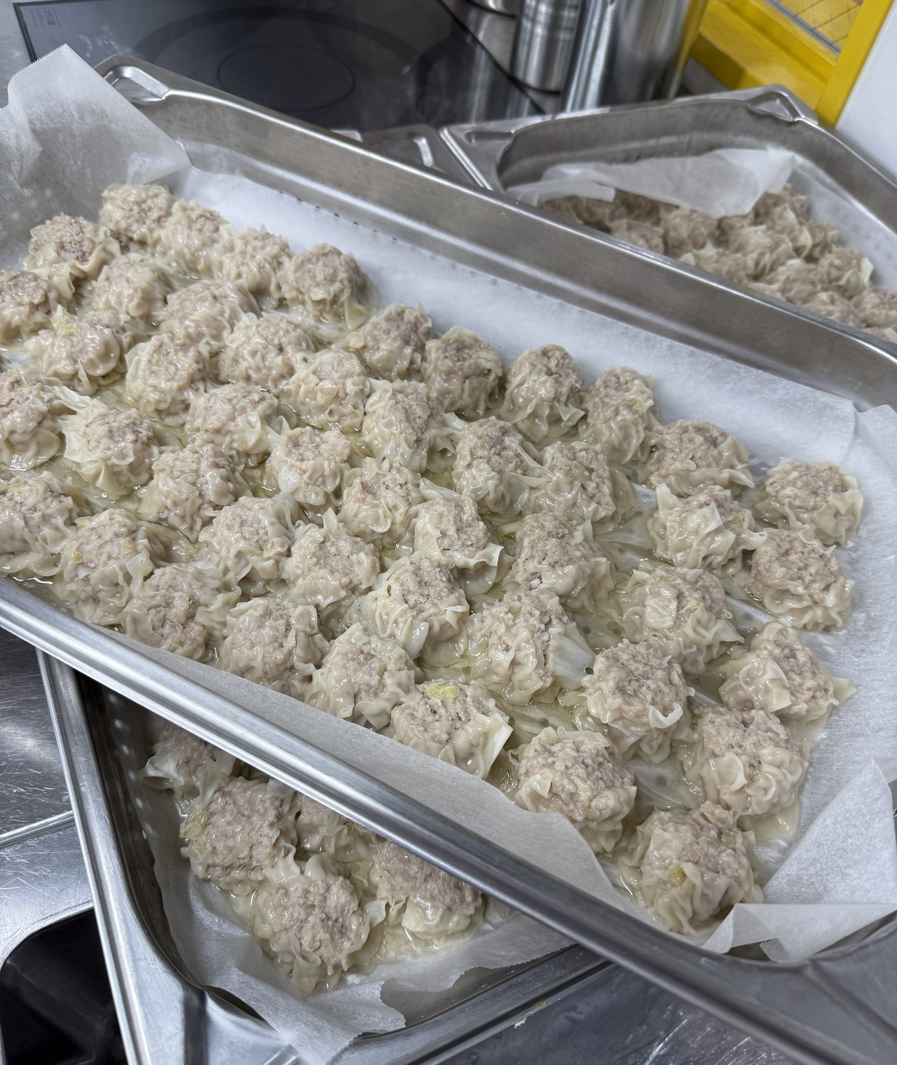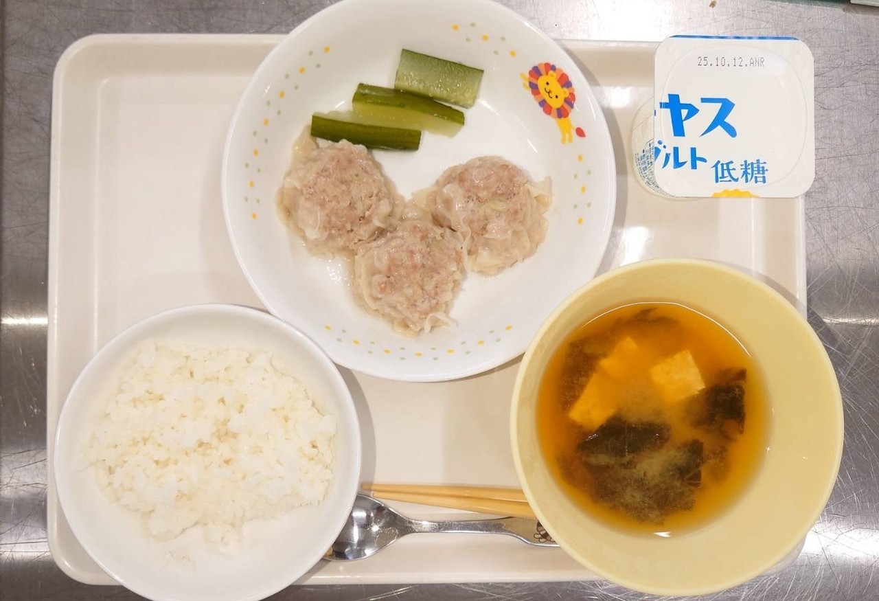 今日は、『手作りしゅうまい』の紹介です。しゅうまいの日、給食室は皆気合が入ってます(^o^)/みんなで、一斉に420個のしゅうまいを包みます。2年目ともなるとあっちからこっちから手が伸びて、あっという間に包み終わりました。手作りならではの美味しいしゅうまいが出来上がり、子どもたちも笑顔でたくさん食べてくれました(*^▽^*)