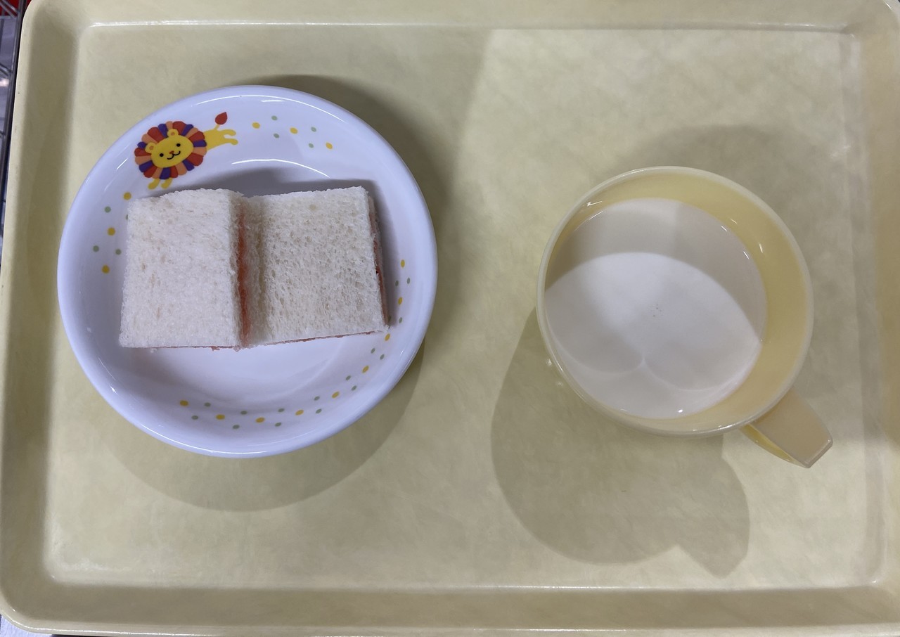 トマトジャムサンドは、りす・ぱんだ組さんにトマトジャム作りをお手伝いしてもらいました♪トマトを潰す作業をとても楽しんでいました(*^-^*)自分たちで作ったおやつは特別な味だったようです。実は隠し味にオレンジジュースを少し混ぜています☆