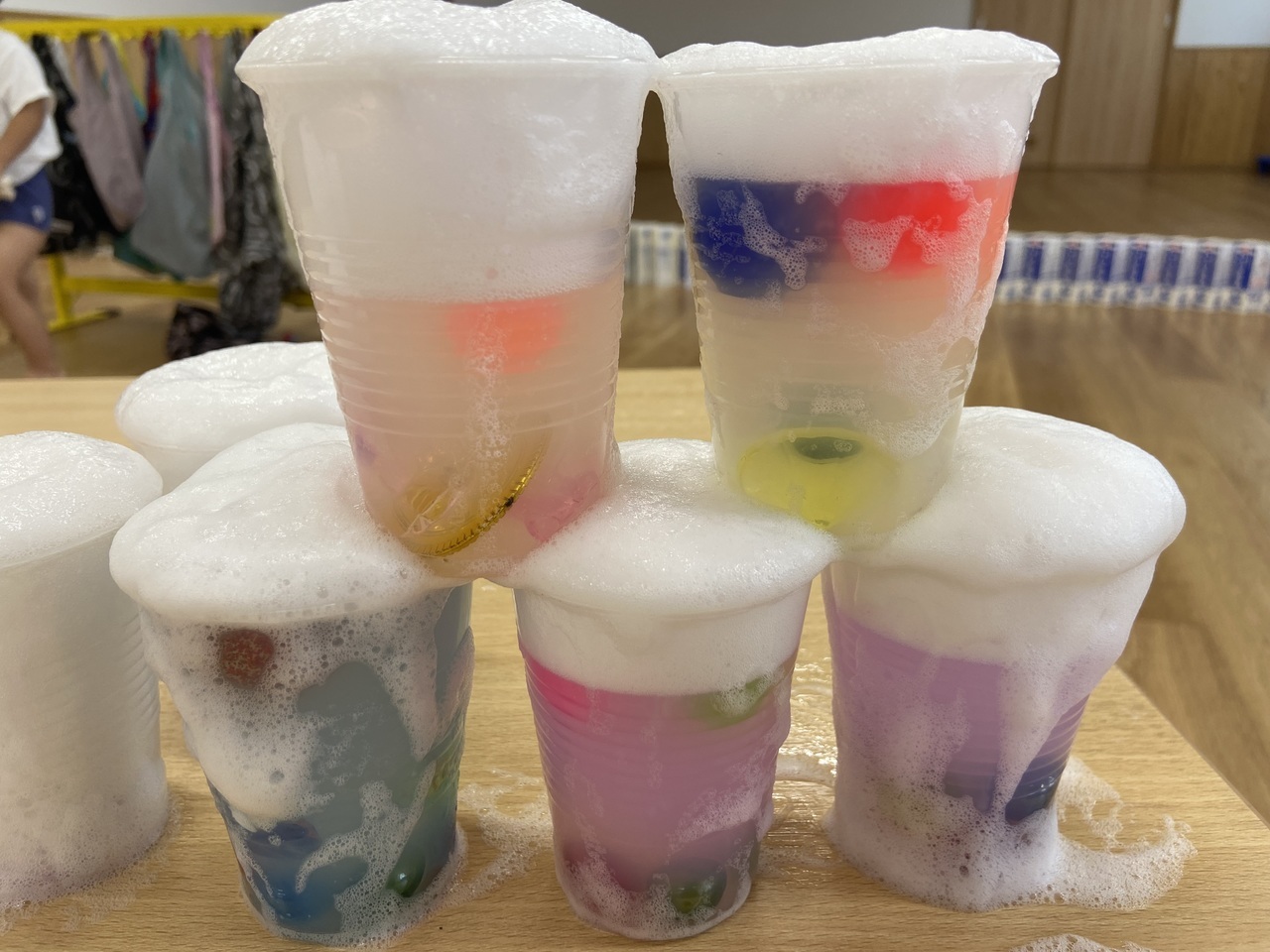 コップに入れてジュースを作ったり、キラキラ光る宝石を入れて友だちと見比べてみたりと、