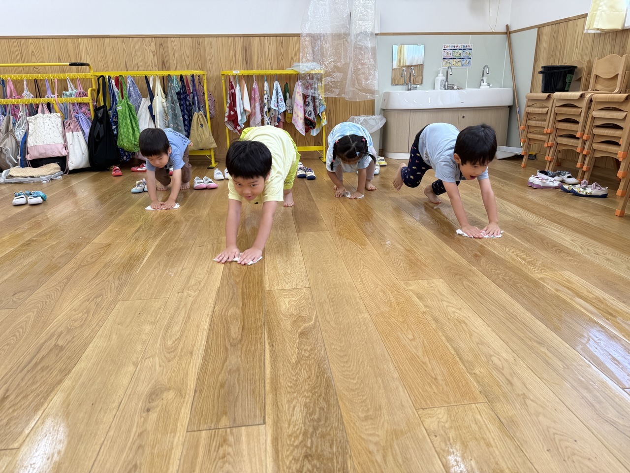 最後にお部屋と廊下を雑巾かけ競走をして盛り上がりました(^▽^)/