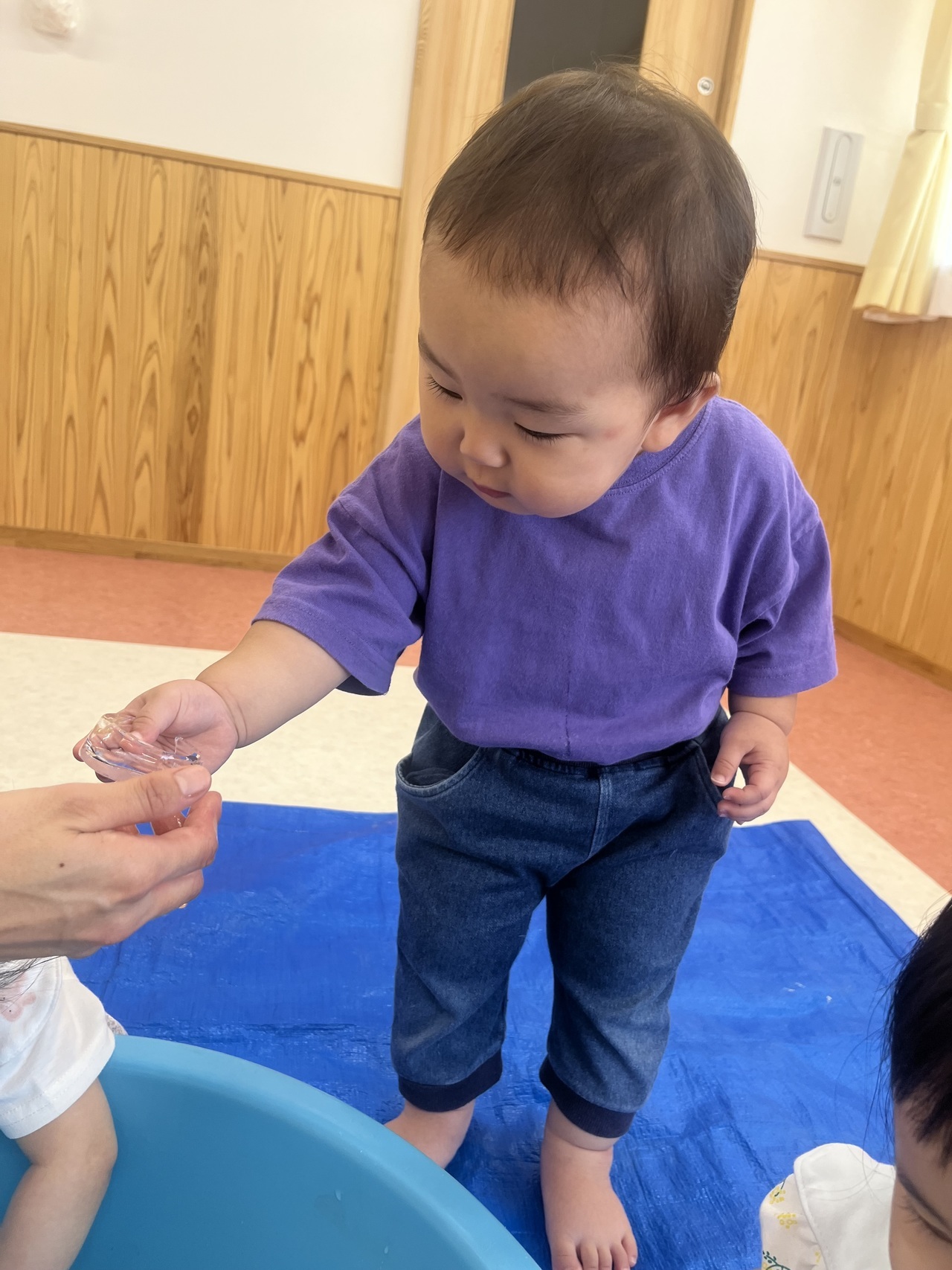 暑い日が続く中、ひよこ組では水遊びをしました!