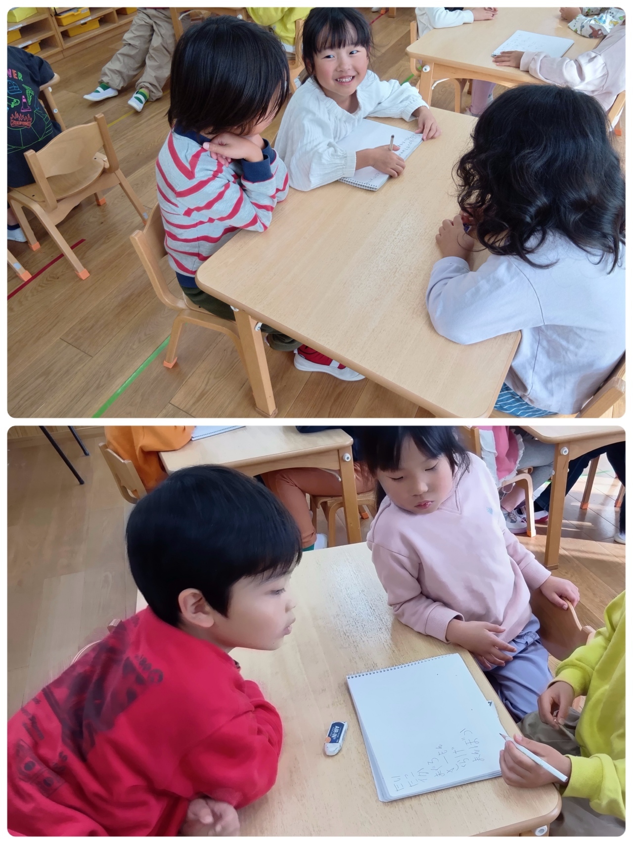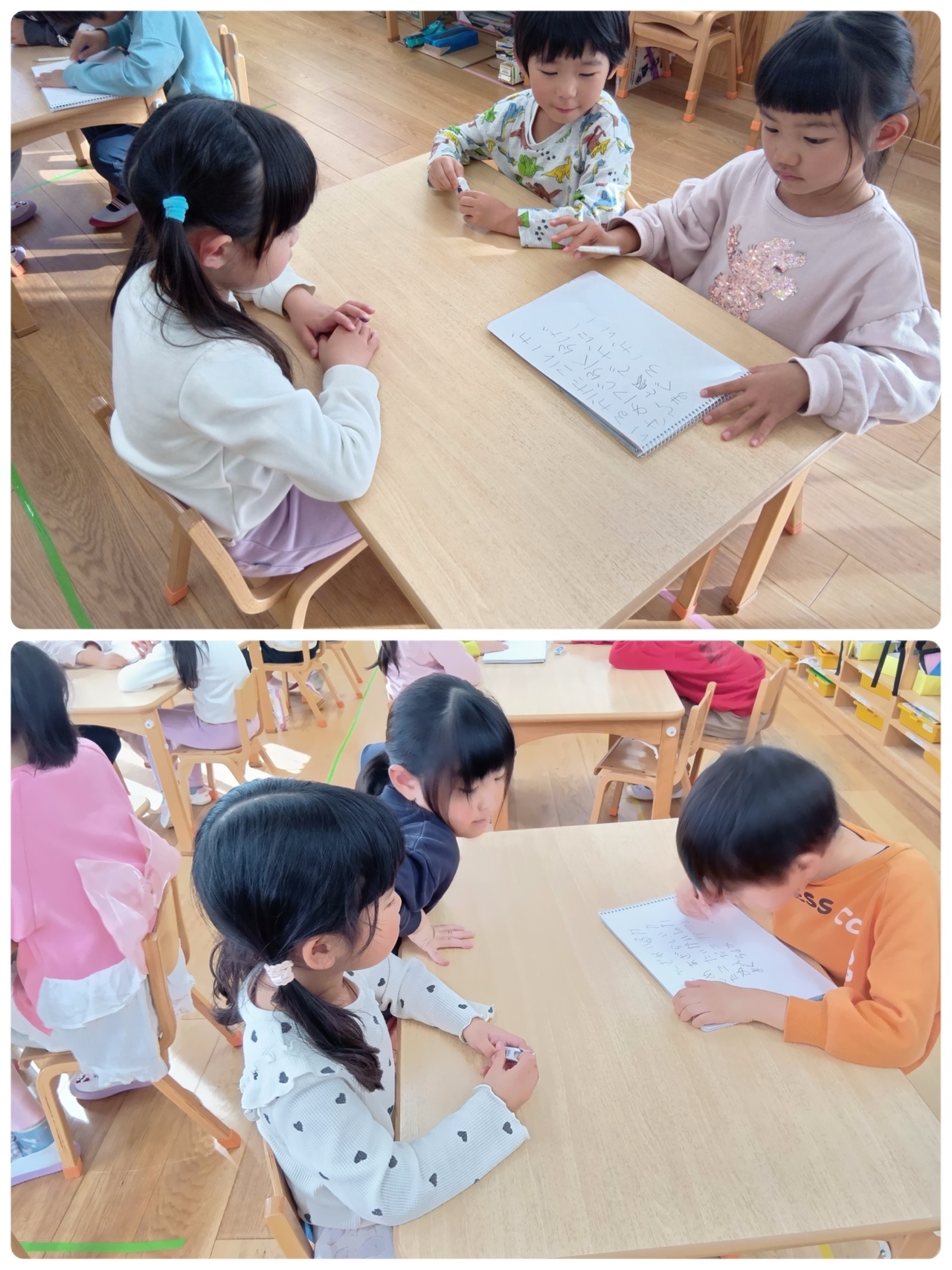 テーマを決めてことばを書いていくゲームで文字に興味が出てきたとら組さんにぴったり☆ミ夢中で書いていました(*^-^*)